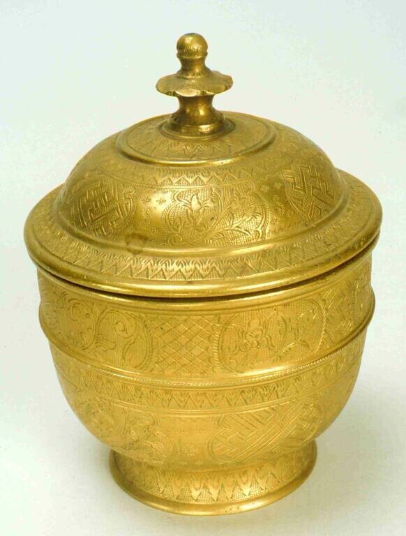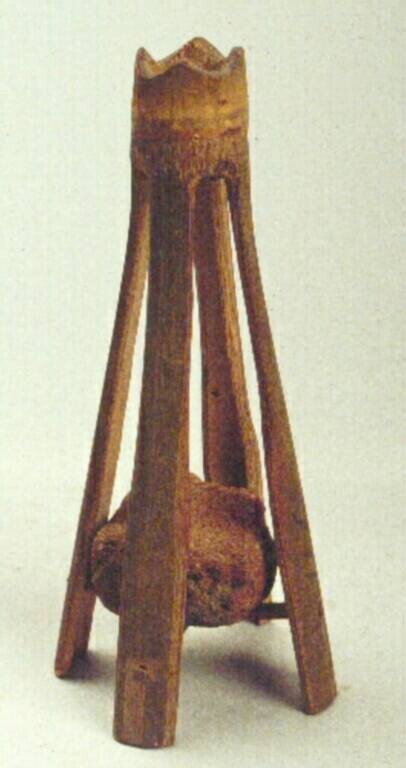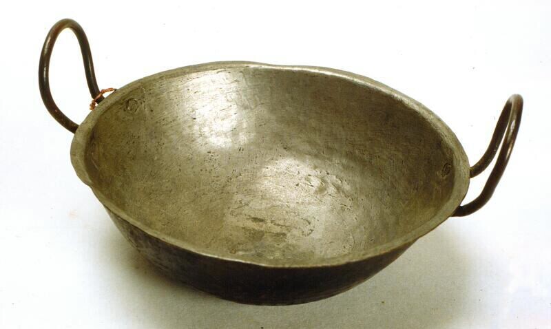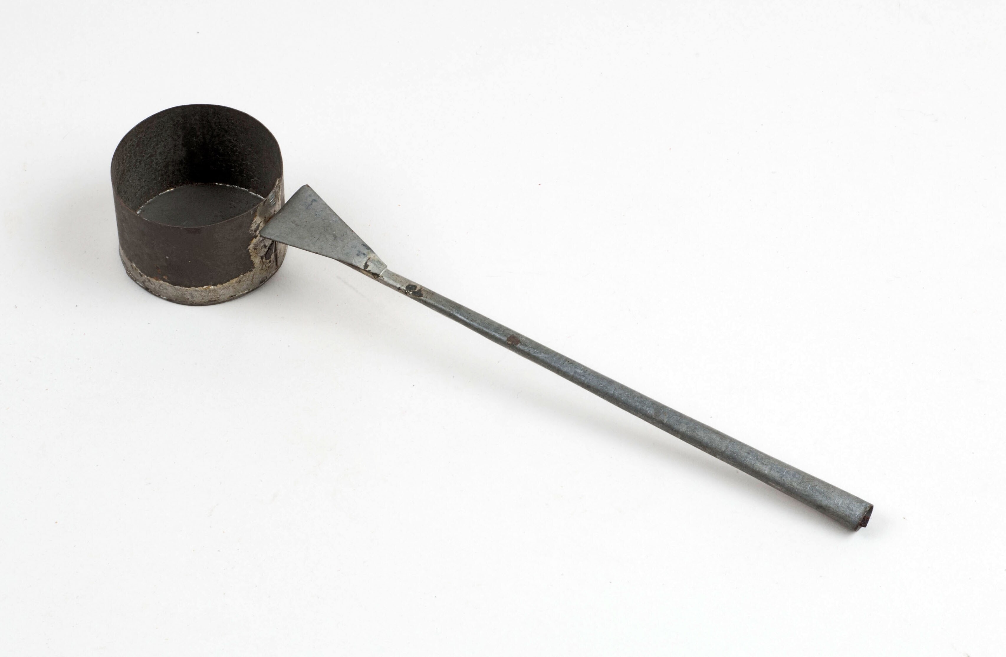 Blikken waterscheppertje, gebruikt als kinderspeelgoed