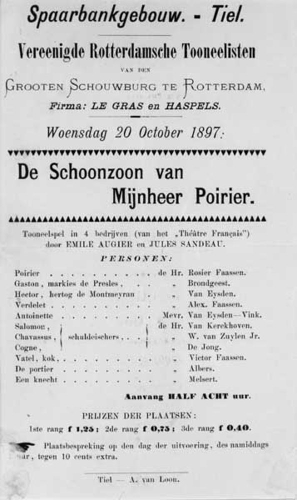 Affiche van de voorstelling te geven door de Vereeni...