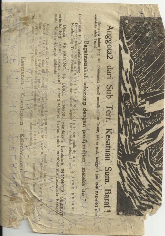 half affiche pro-Indonesië, woorden en tekening in h...