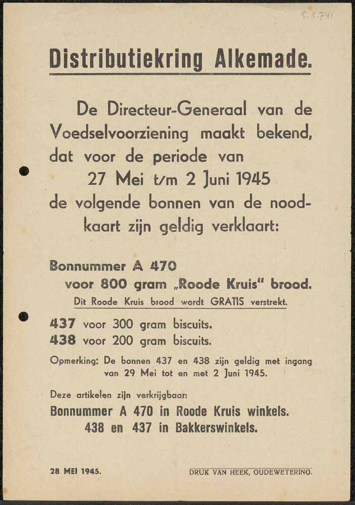Poster; aan alle ingezetenen van de Distributiekring...