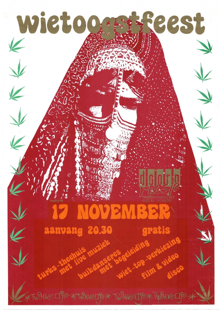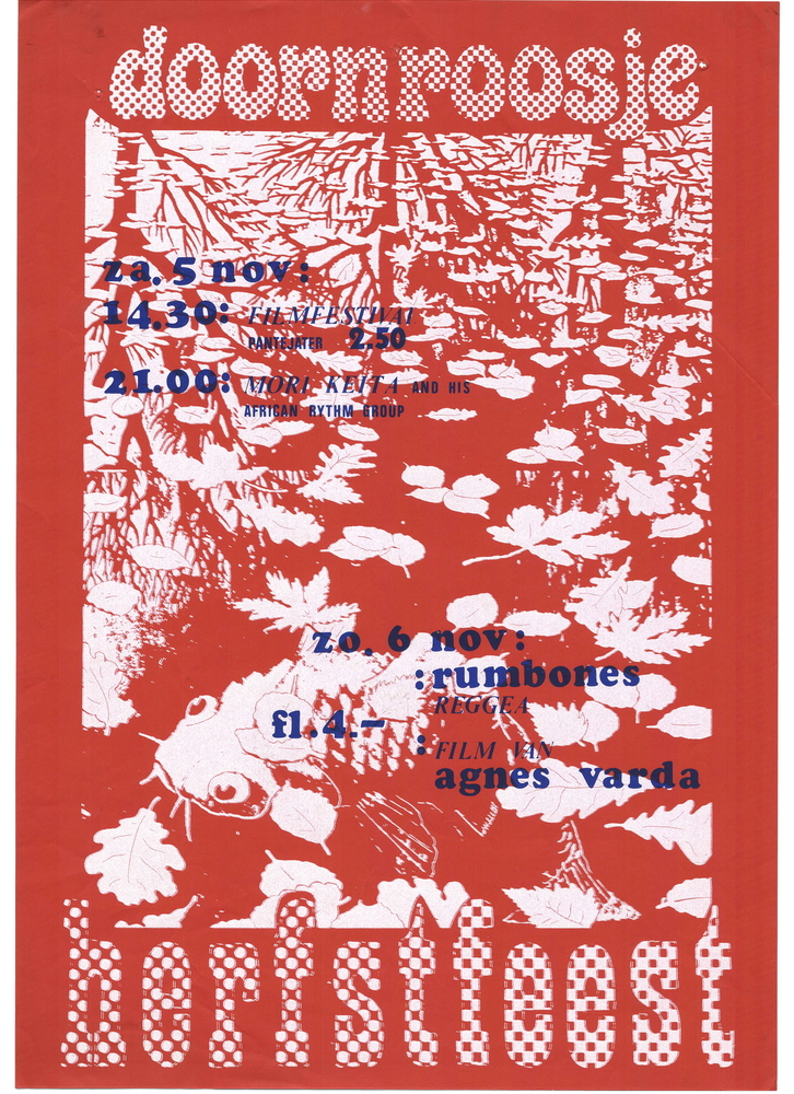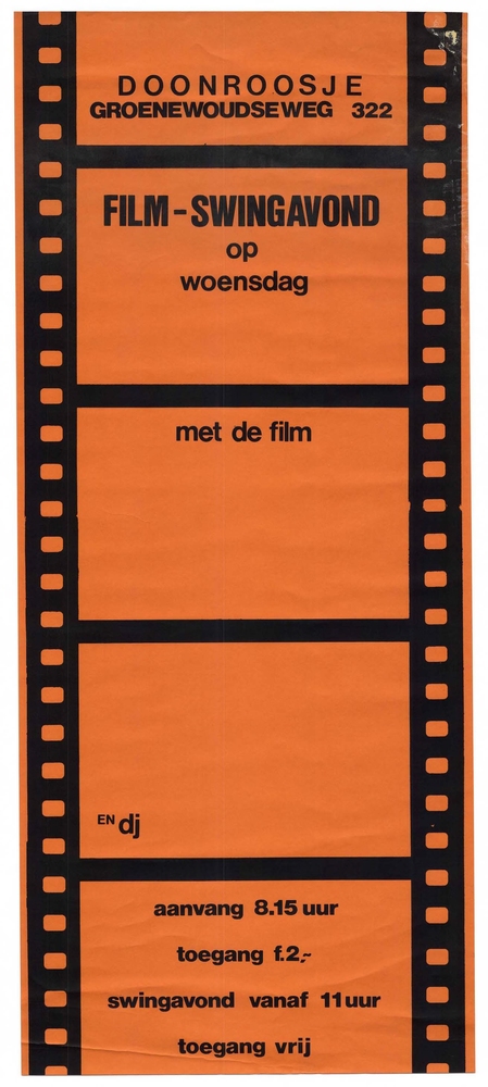 affiche van papier betreffende filmavond in de zaal ...