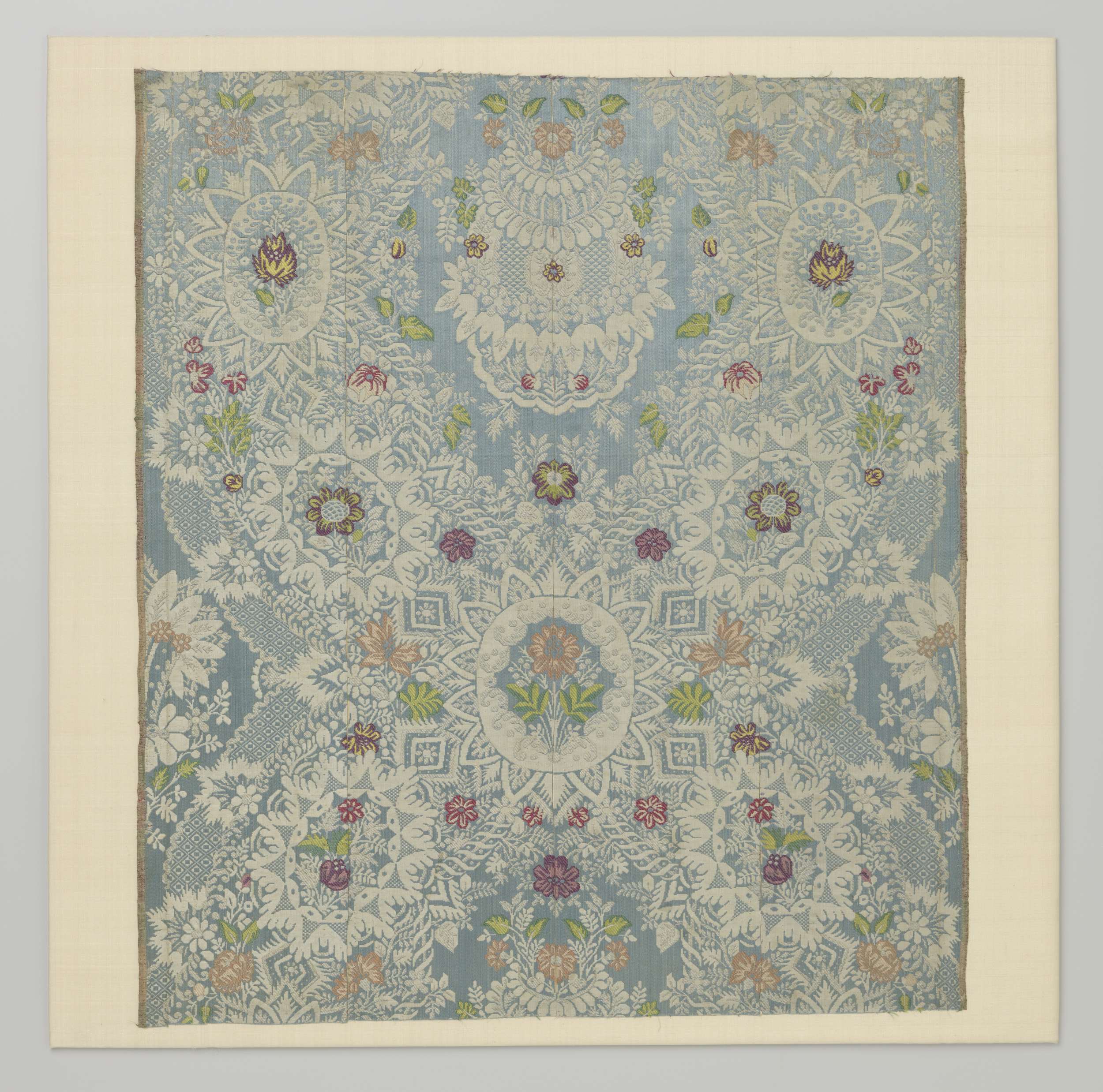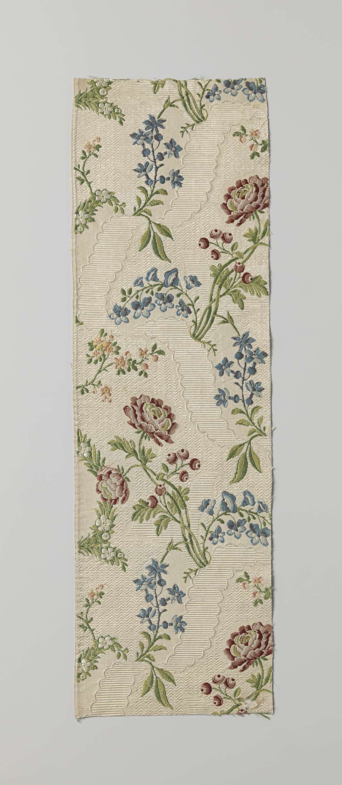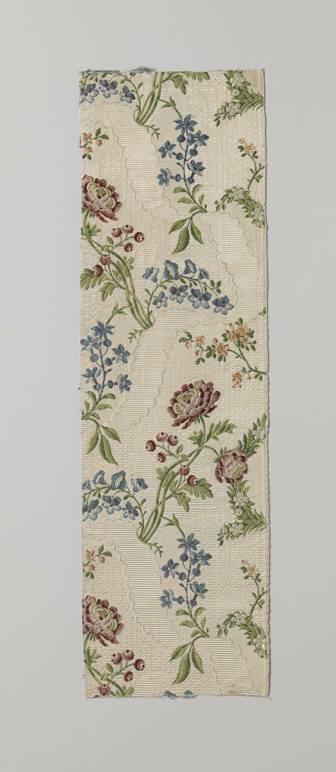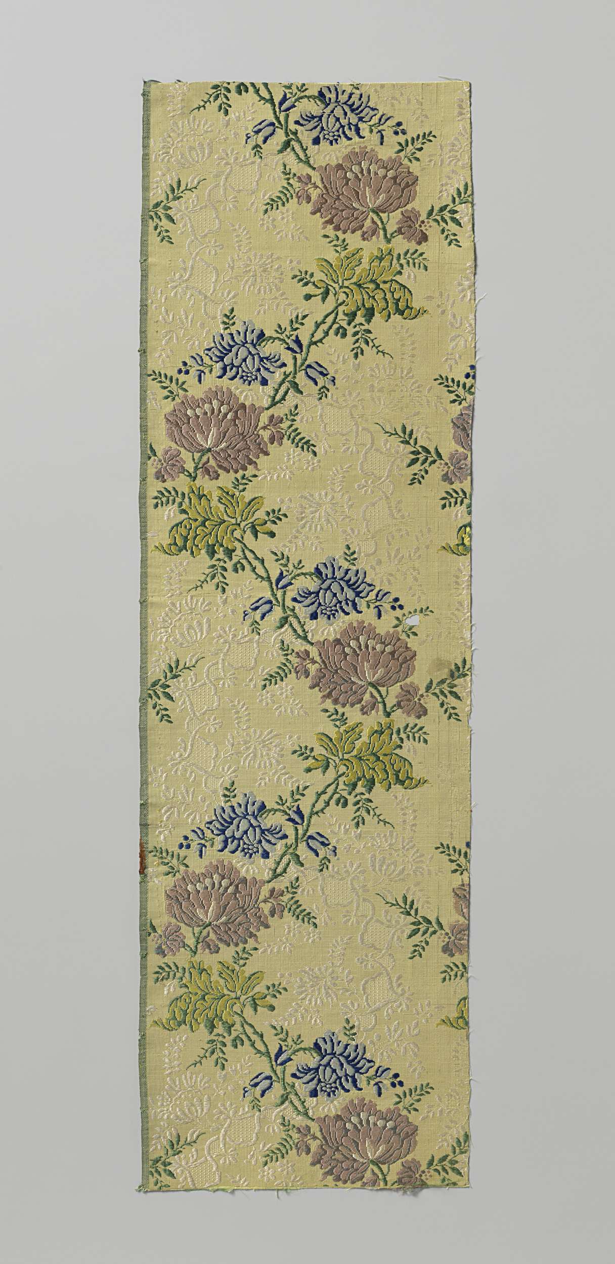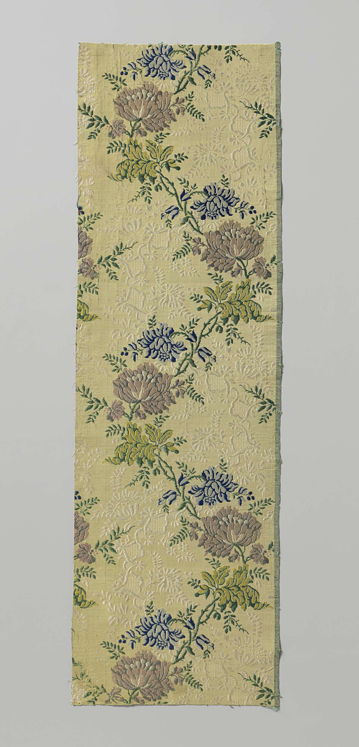 Geborduurd satijndamasten fragment