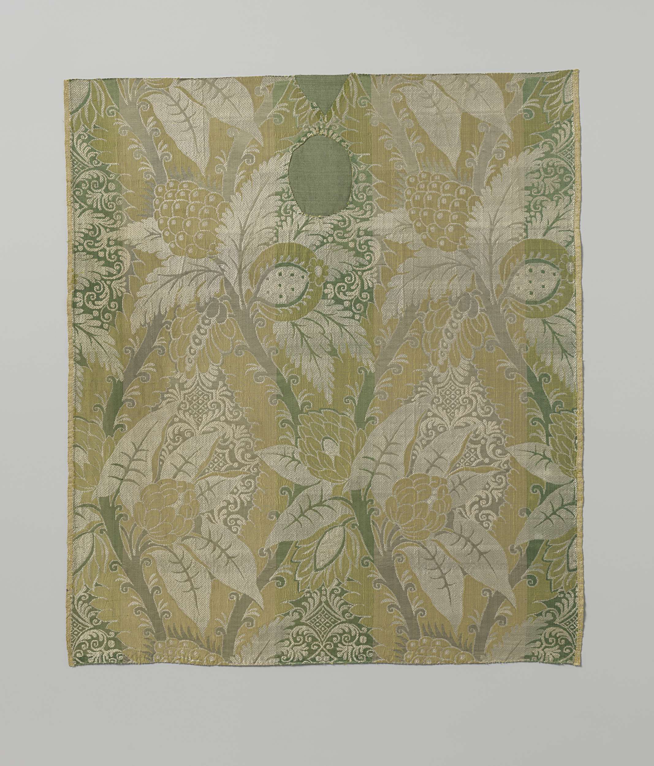 Fragment zijdeweefsel met patroon van waaiervormig b...