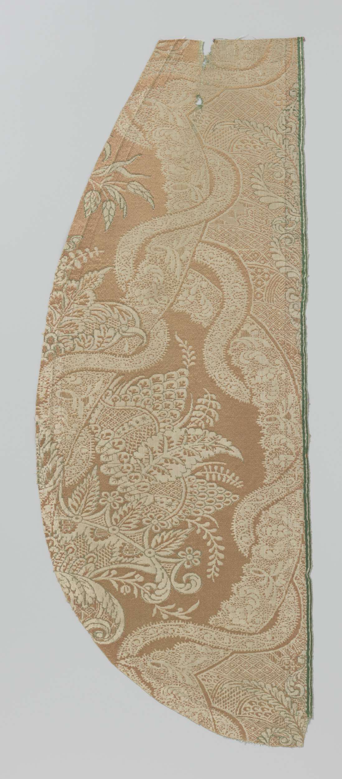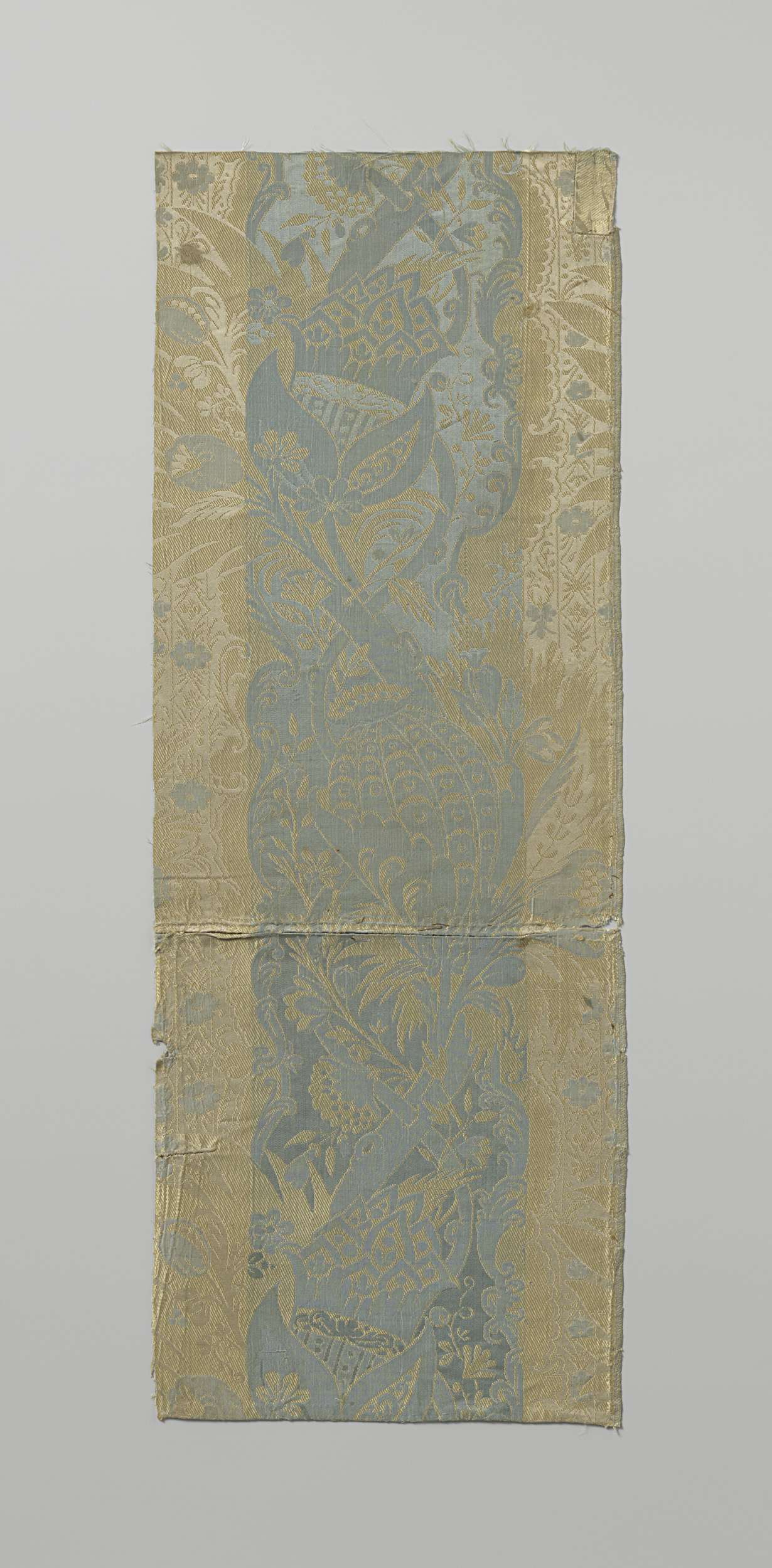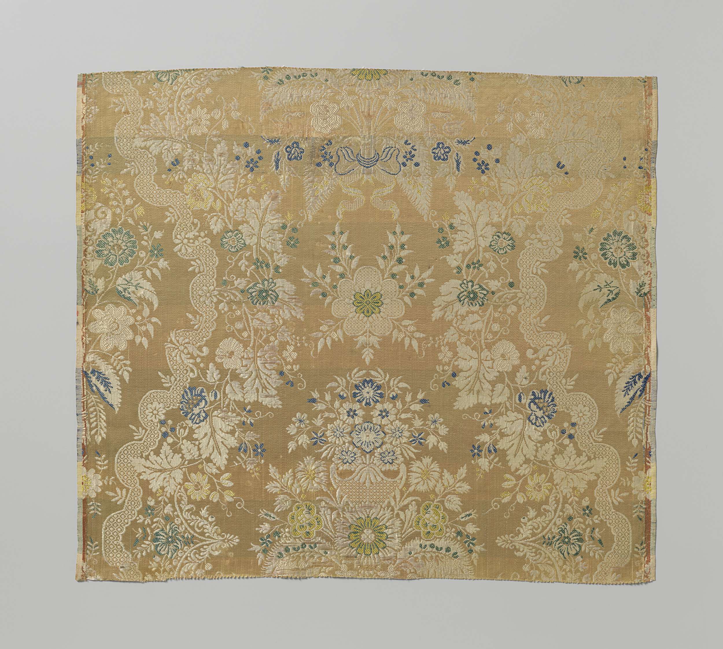 Fragment crèmekleurige gebrocheerde zijde met op geb...