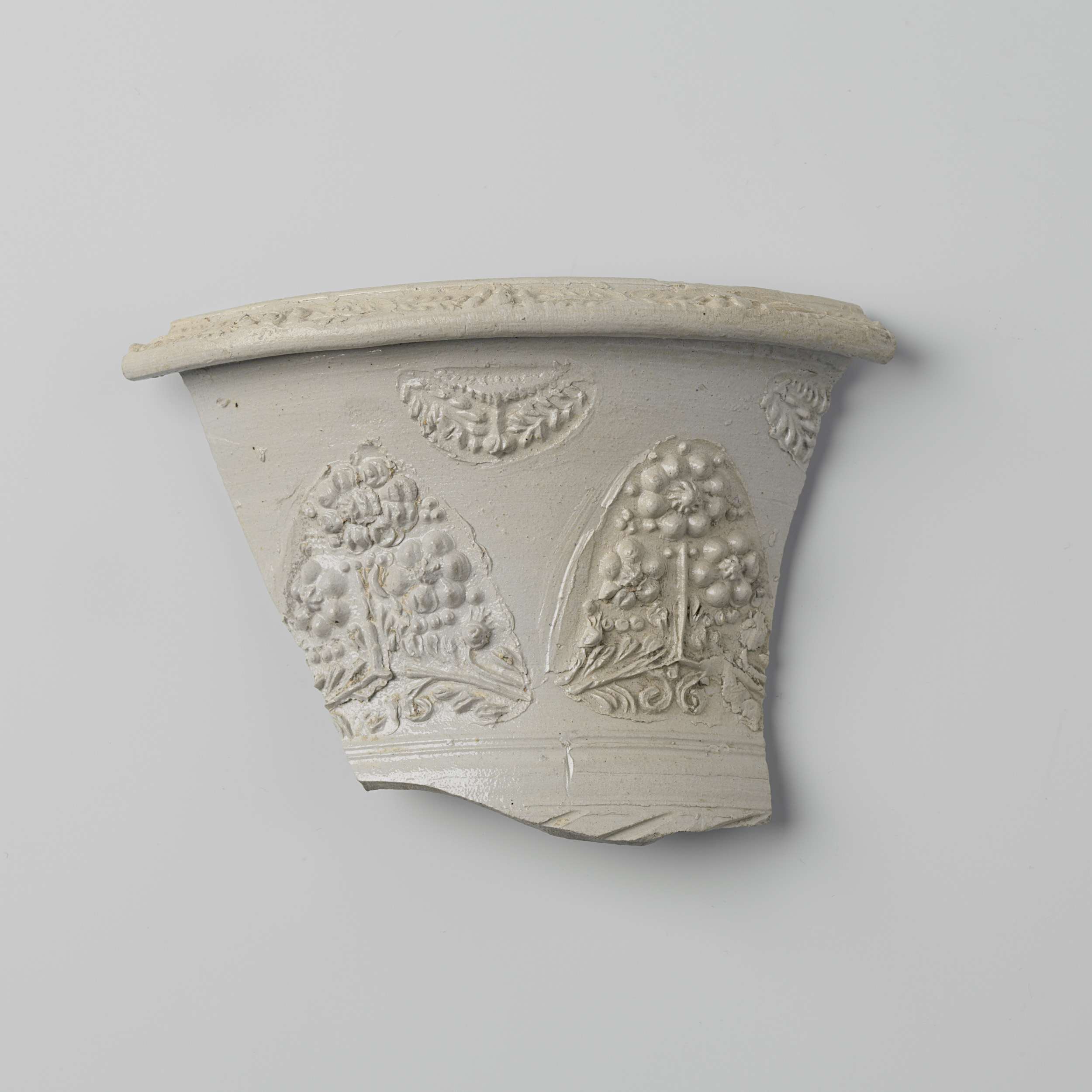 Fragment of a flower pot with floral scrolls