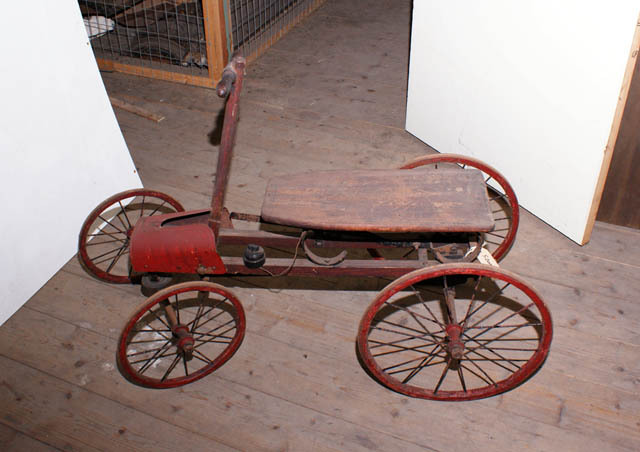 Gele trapauto