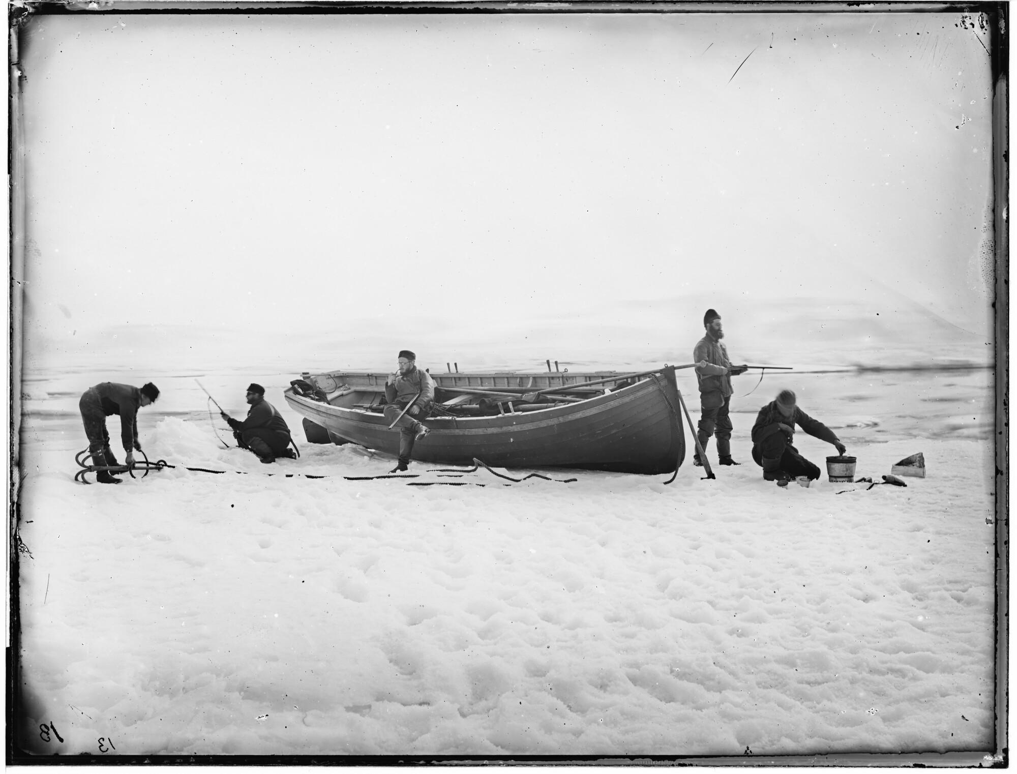 Boat party on ice floe off Flat Hook. N.W. coast Spi...