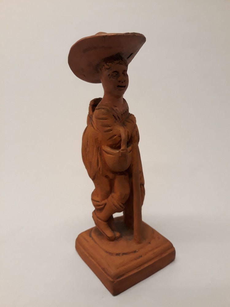 Beeldje van staande mannenfiguur met stok en hoed