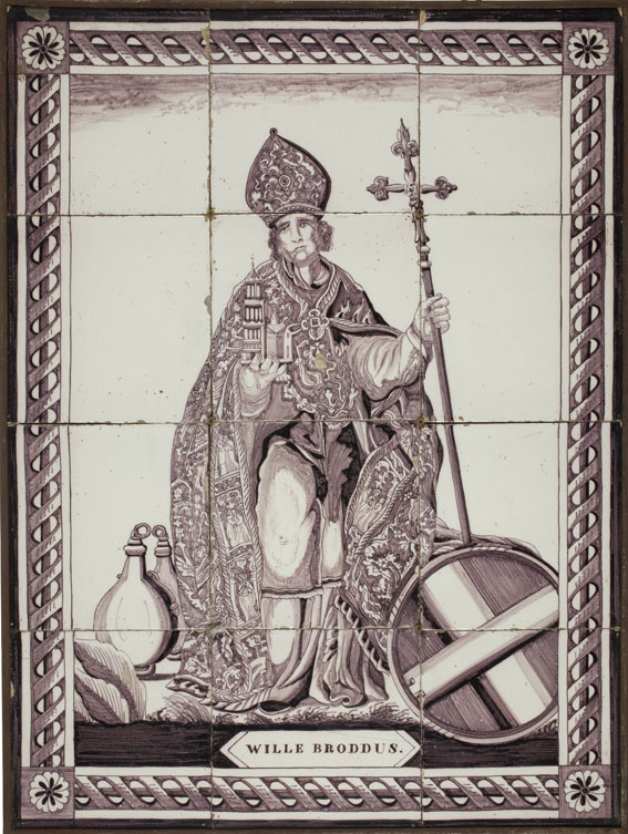 Tegeltableau (paars) met voorstelling van St. Willib...