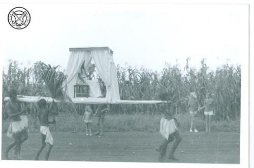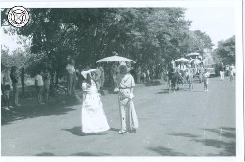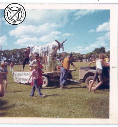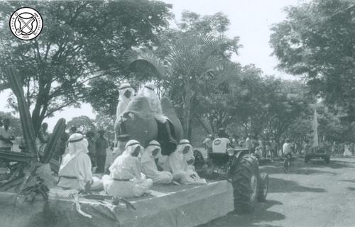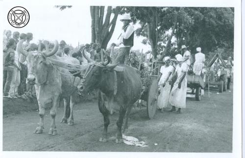 Carnavalsoptocht met ossenkar en slaven