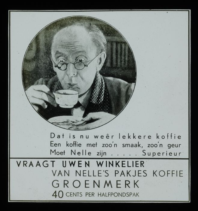 Glasdia van Van Nelle met bioscoopreclame voor Groen...