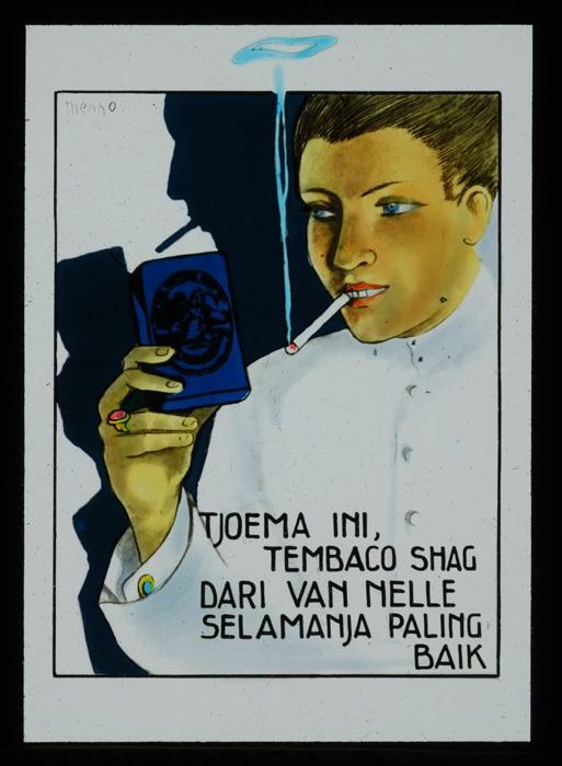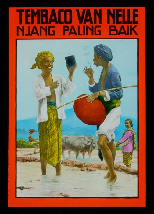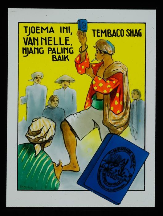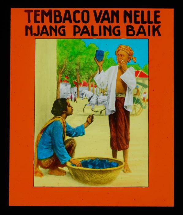 Glasdia van Van Nelle met bioscoopreclame voor pakje...