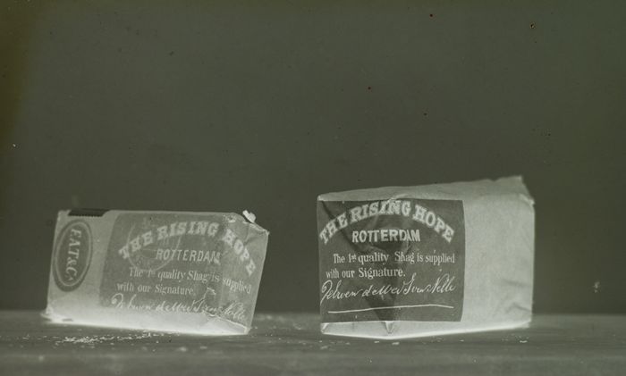 Glasplaatnegatief van Van Nelle met verpakking Old B...