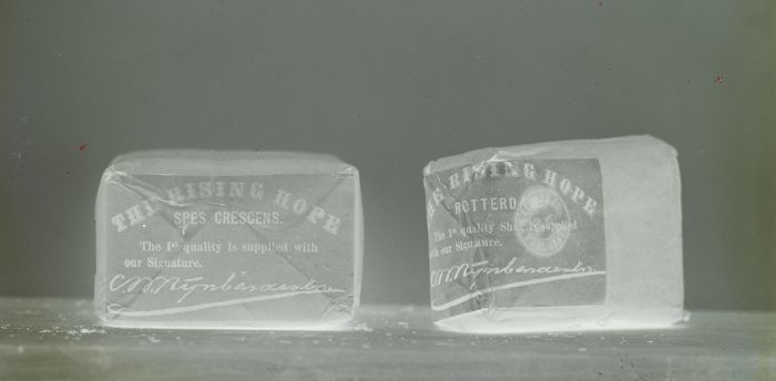 Glasplaatnegatief van Van Nelle met deel verpakking ...