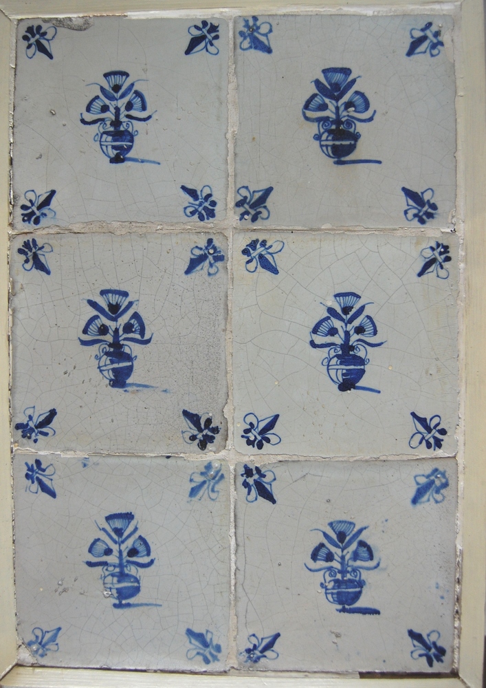 Tegelveld bestaande uit zes tegels van aardewerk. Bl...