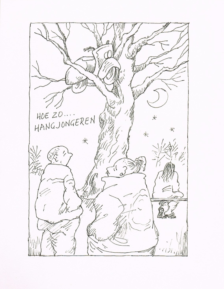 pentekening op papier datering 1998 vervaardiger Bab...