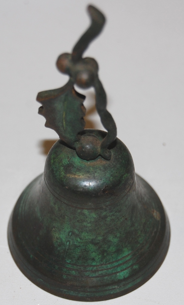 Koperen tafelbel versierd met hulstblad en besjes, a...