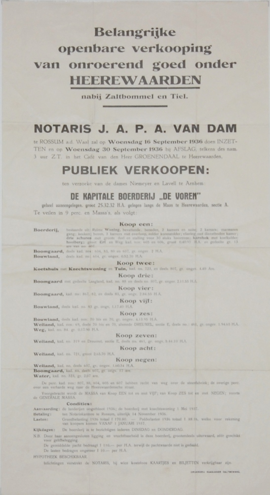 publicatie voor een verkoping Heerewaarden door nota...
