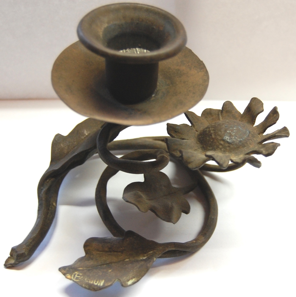 kandelaar. Smeedijzeren ronde holle lekbak met uitge...