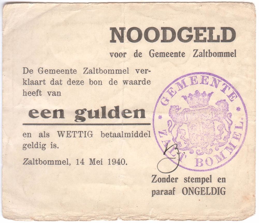 Papieren noodgeld gemeente Zaltbommel