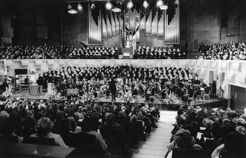 Verenigde Veluwse Koren tijdens een optreden in De D...