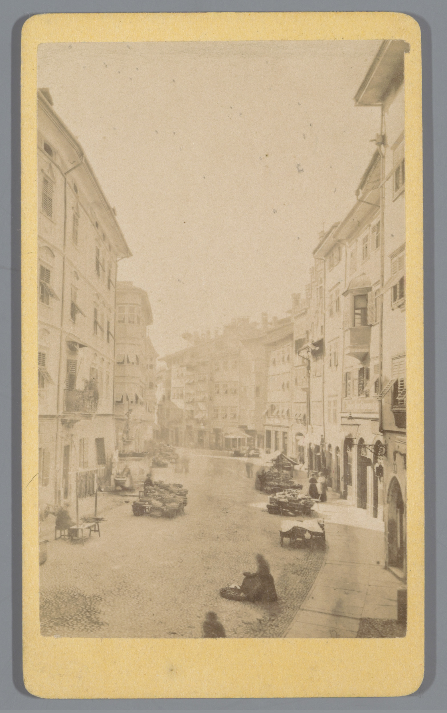 Gezicht op een straat met marktkramen