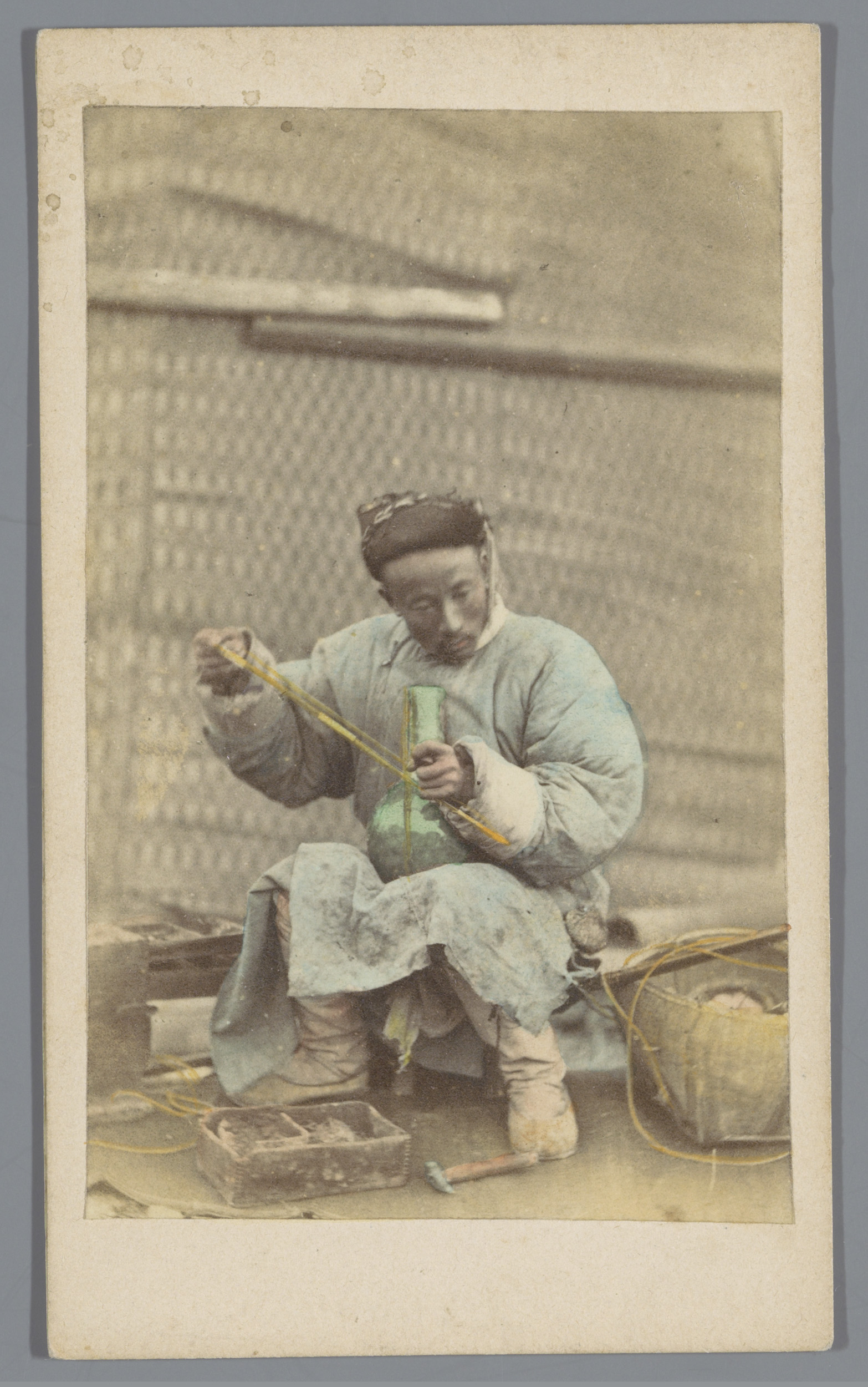 Portret van een Chinese keramist die gebroken aardew...
