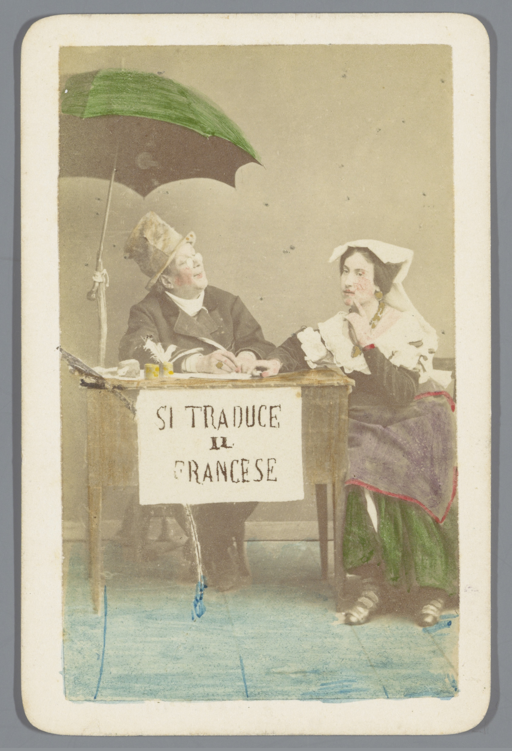 Portret van een onbekende man en vrouw aan een schri...