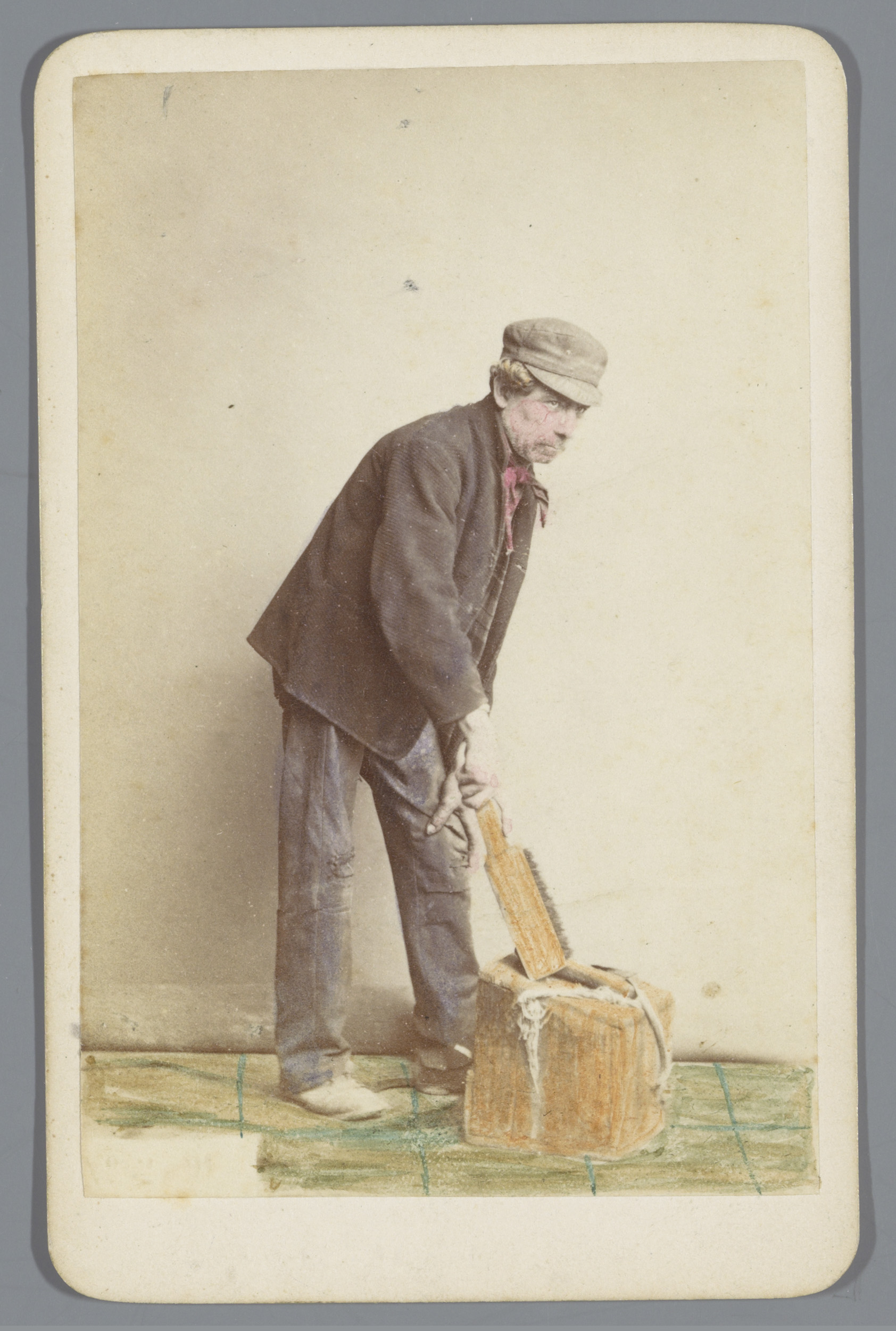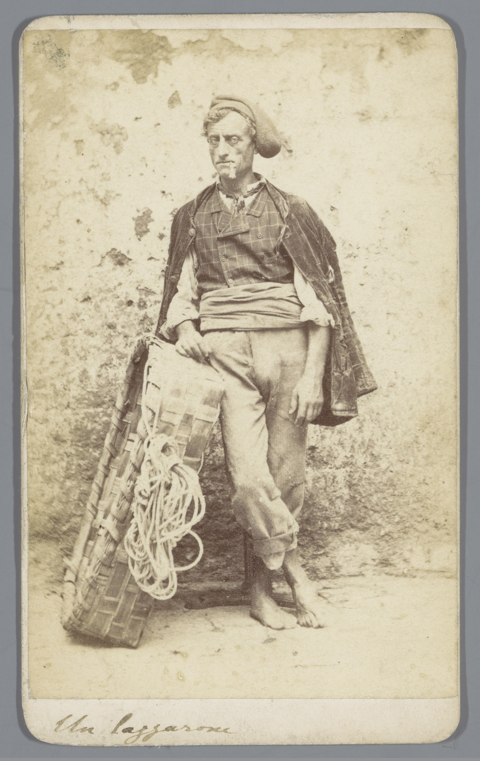 Portret van een onbekende man met een mand op straat