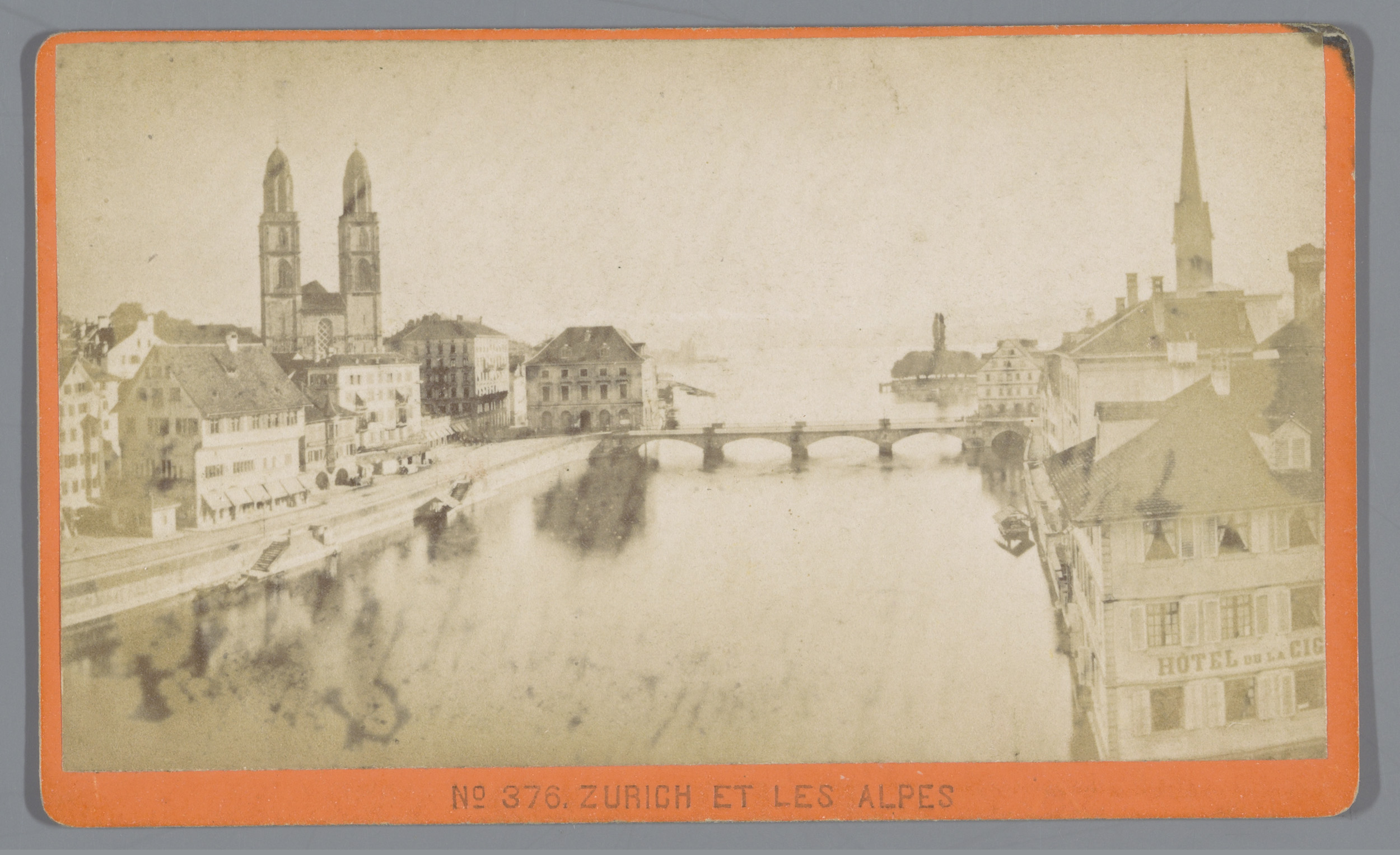 Gezicht op de Limmat door Zürich, links de Grossmünster