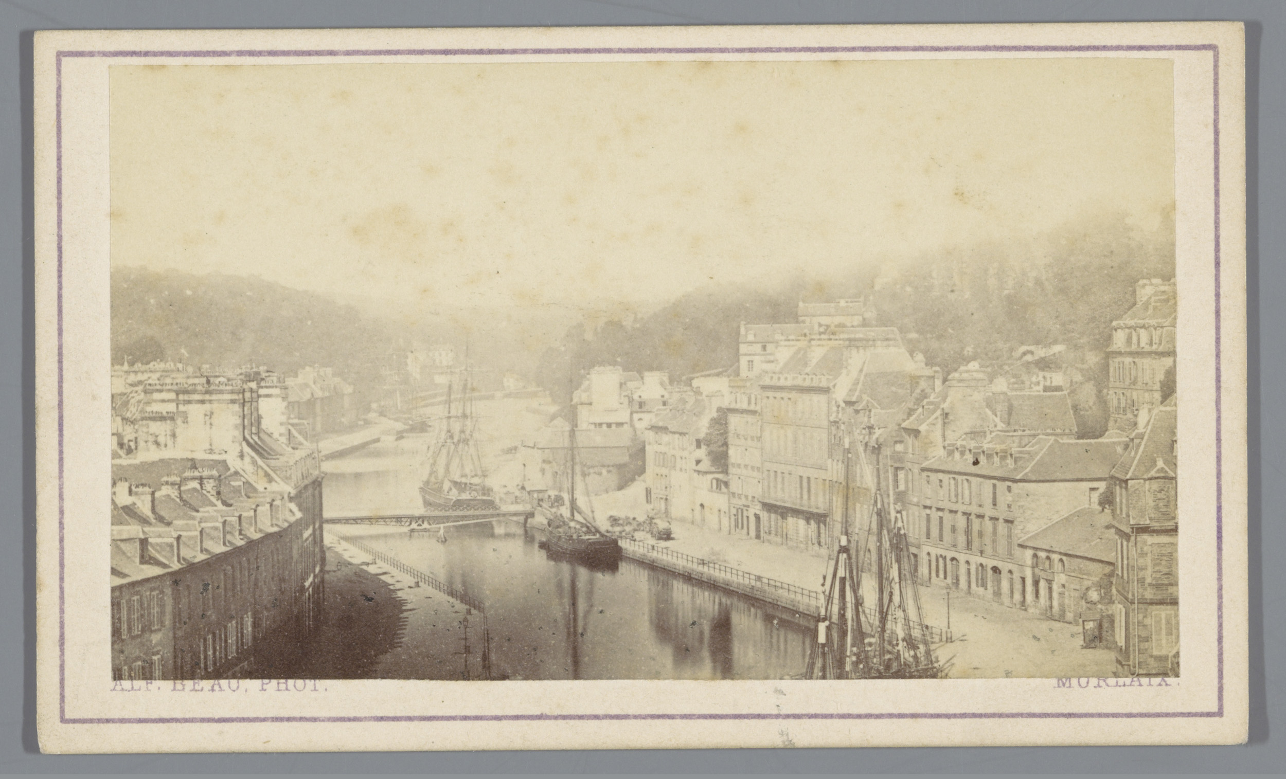 Stadsgezicht, mogelijk van Morlaix, Frankrijk