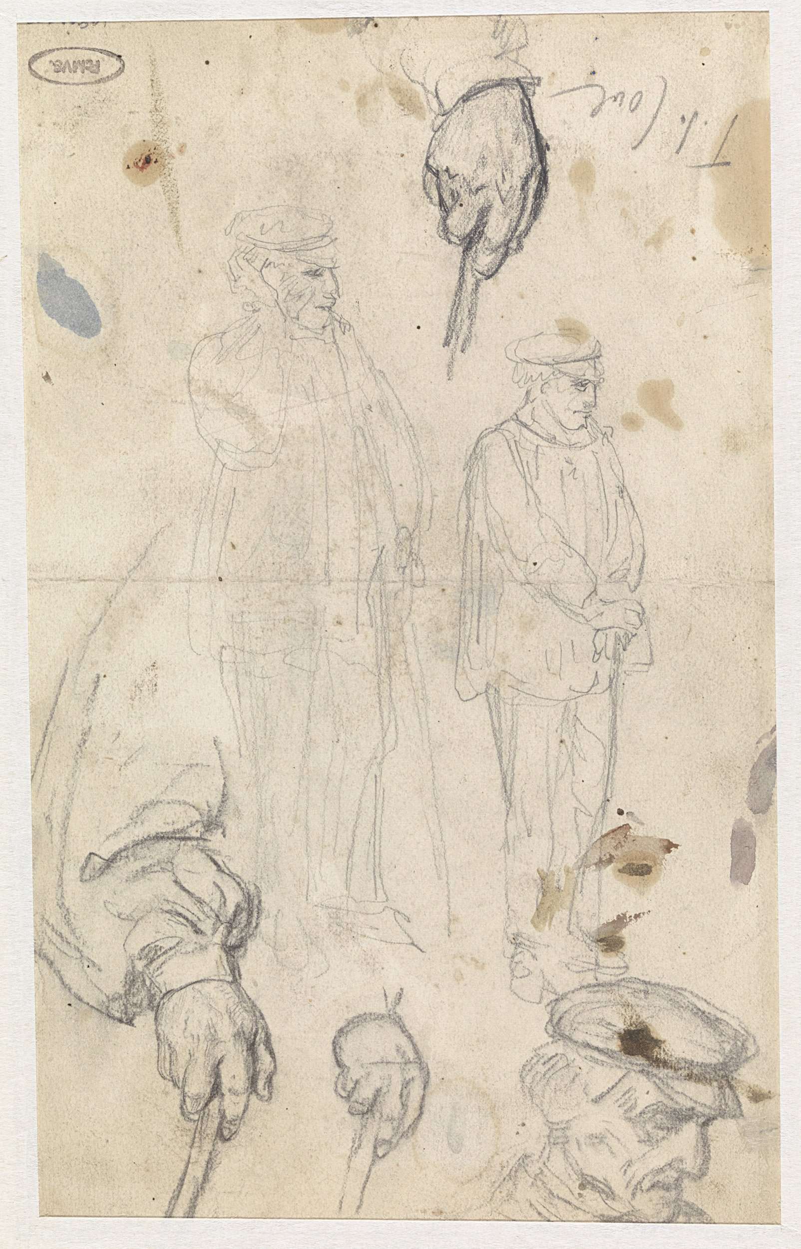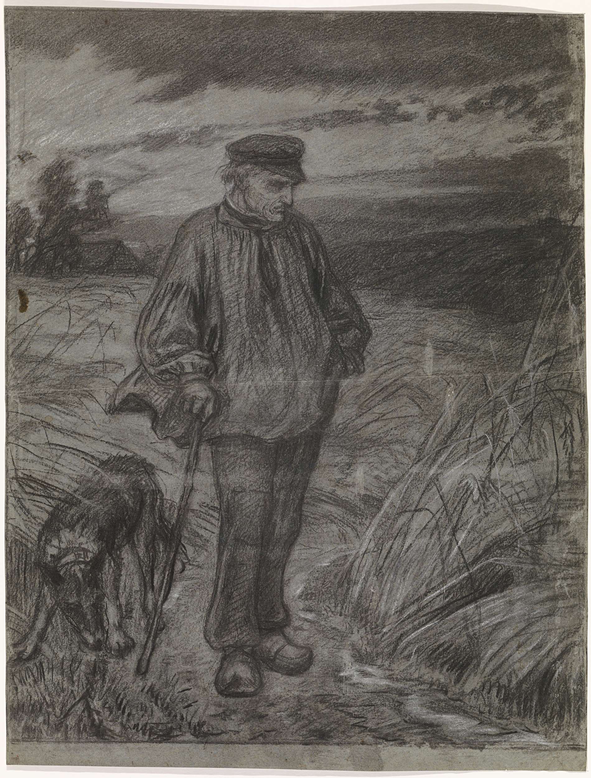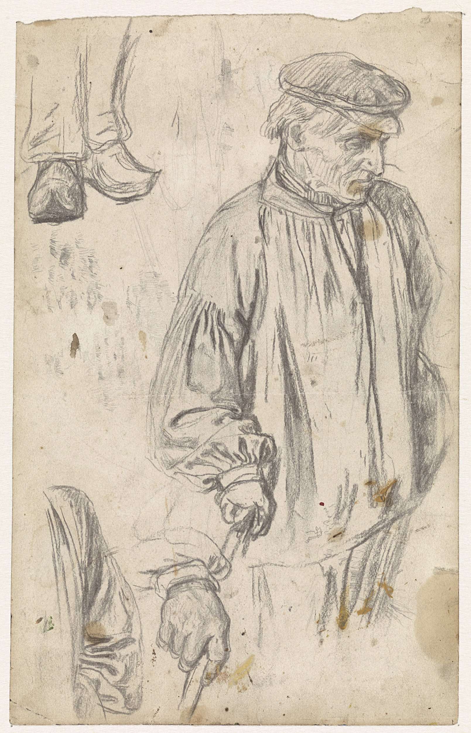 Studies van een boer met een stok