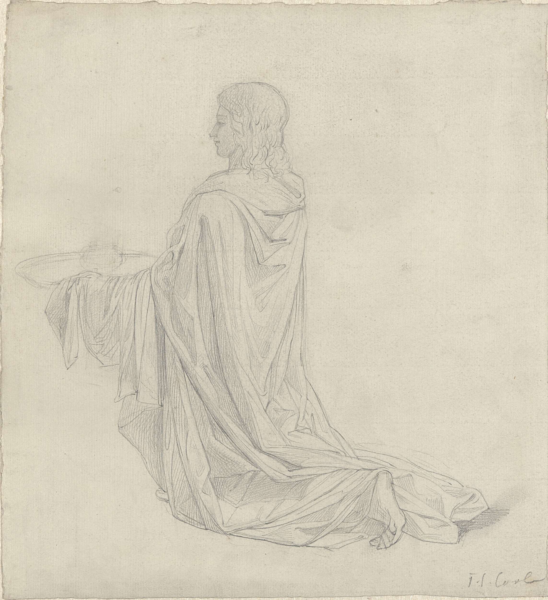 Academiestudie naar staand mannelijk naakt, met hame...