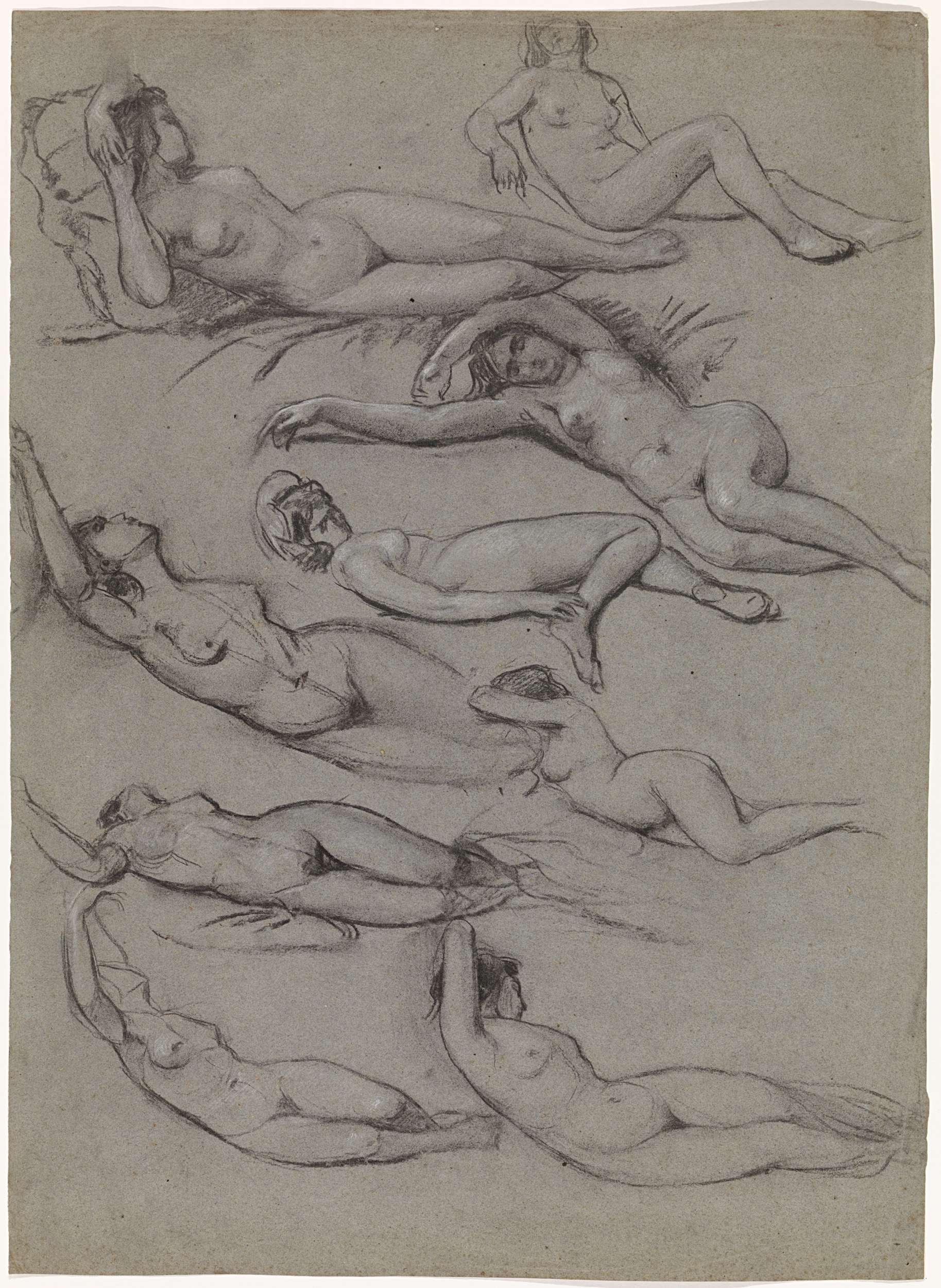 Negen studies van een liggend vrouwelijk naakt