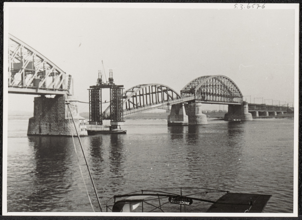 Foto: herstel opgeblazen spoorbrug over de Waal te N...