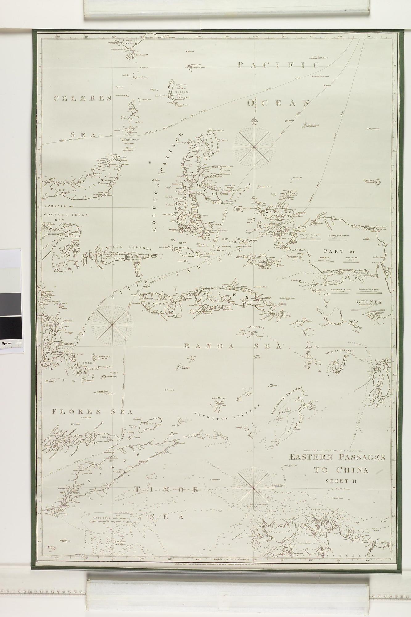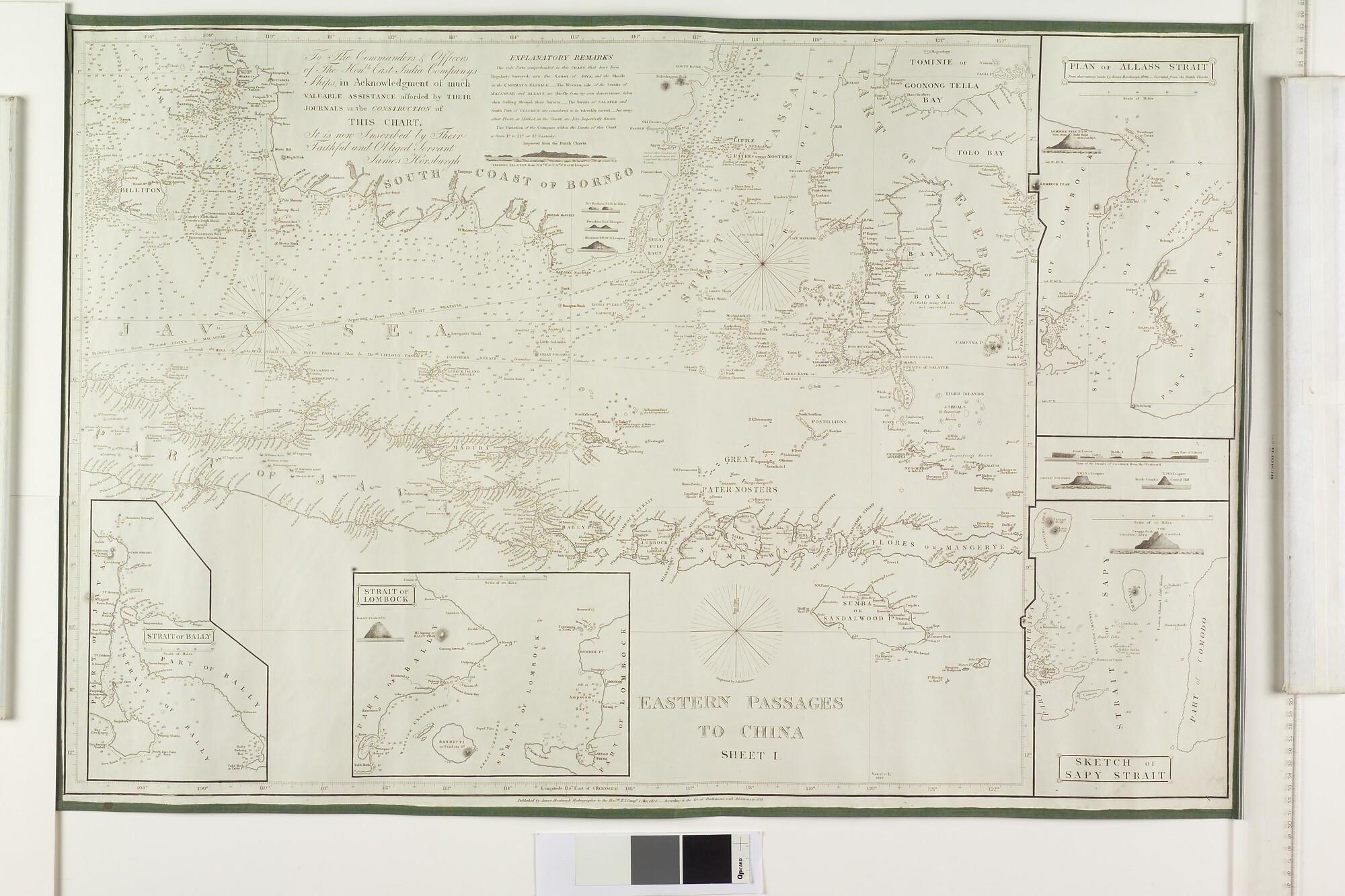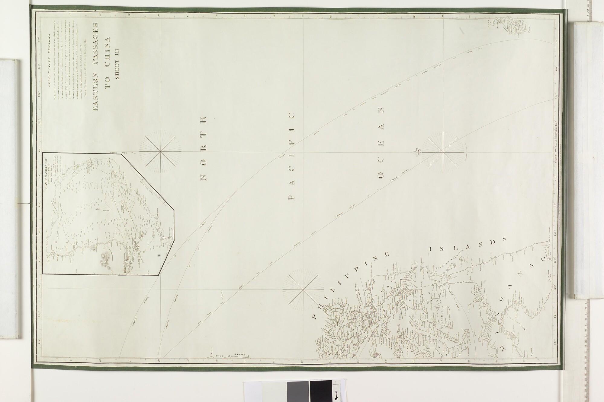 Kaart van de oostelijke passages naar China, in 3 bl...