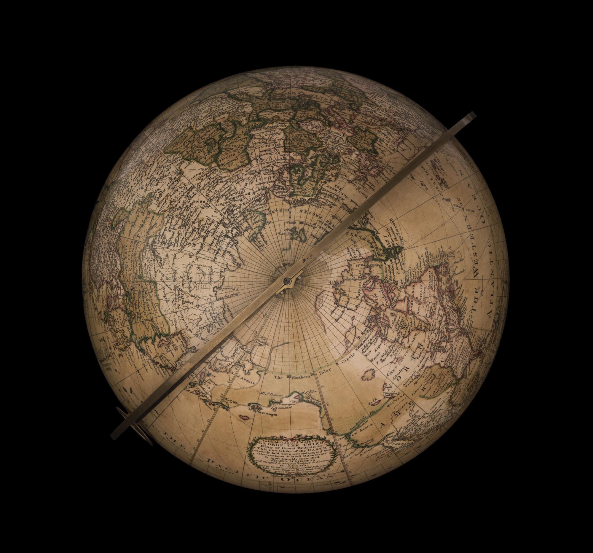 Aardglobe van 31 cm doorsnede door George Adams, 1766