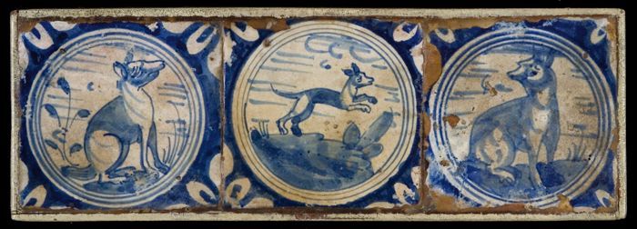 Tegelveld, drie tegels, dier in cirkel, hoekmotief k...