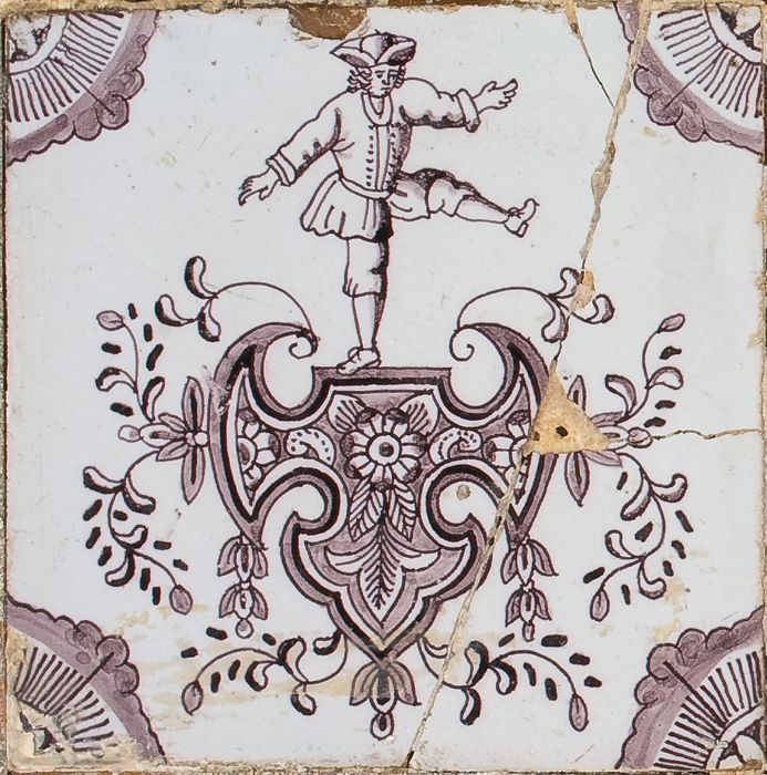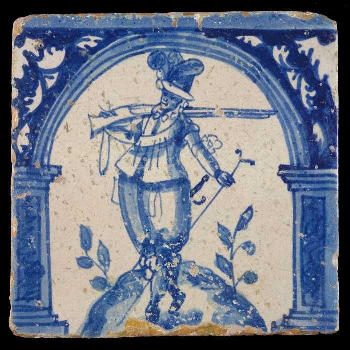 Figuurtegel, in blauw op wit, krijgsman met geweer