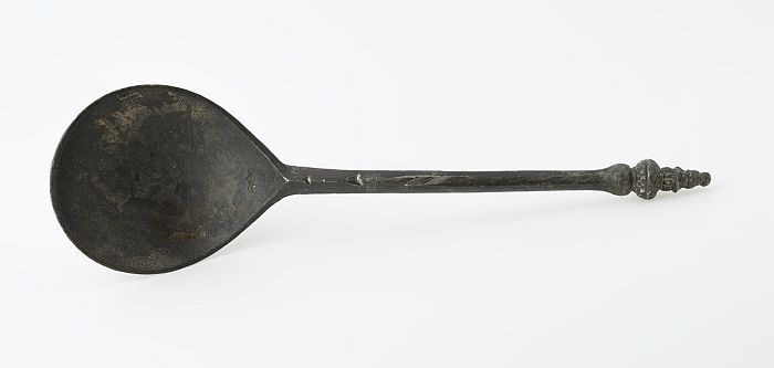 Lepel met vijgvormige bak en zeskantige steel met ve...
