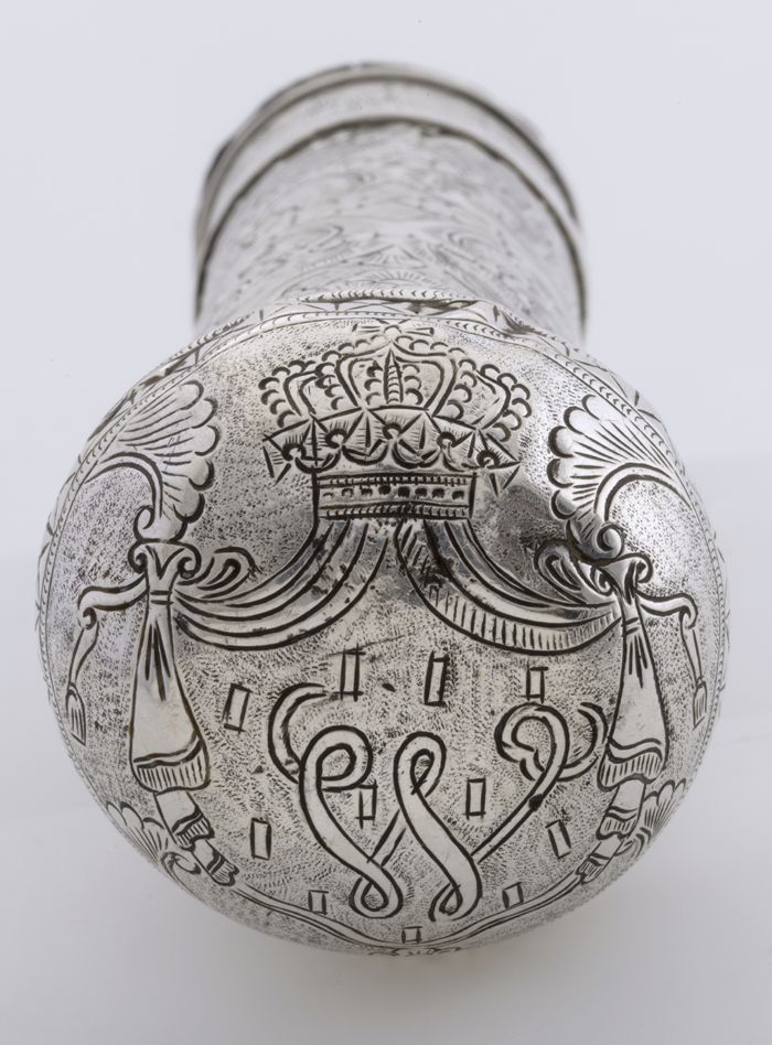 Zilveren theezeef met bruin houten steel