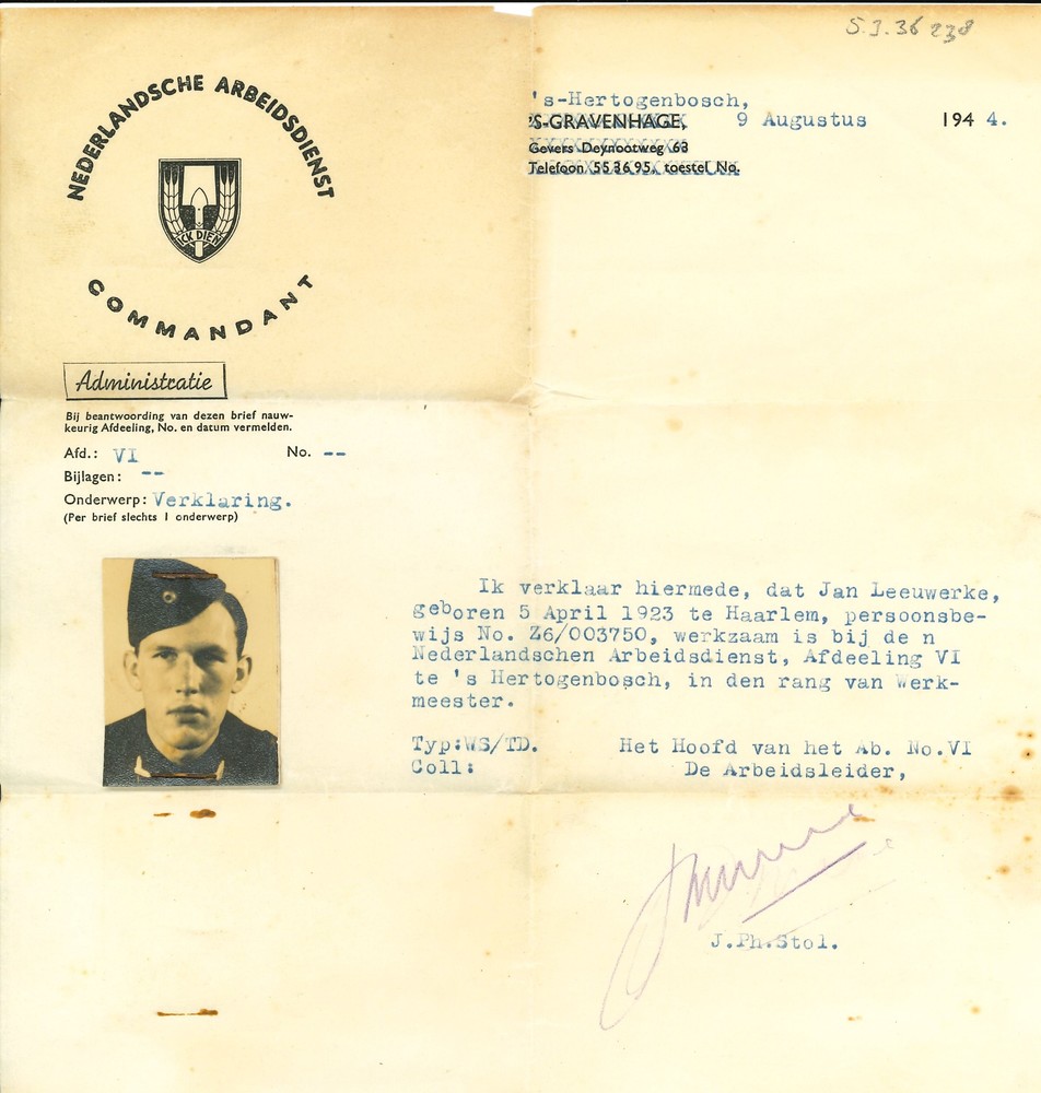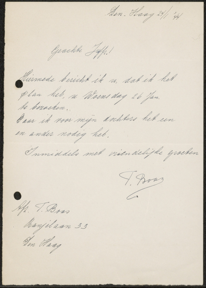 Briefje, Den Haag 24 januari 1944