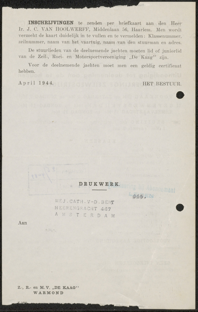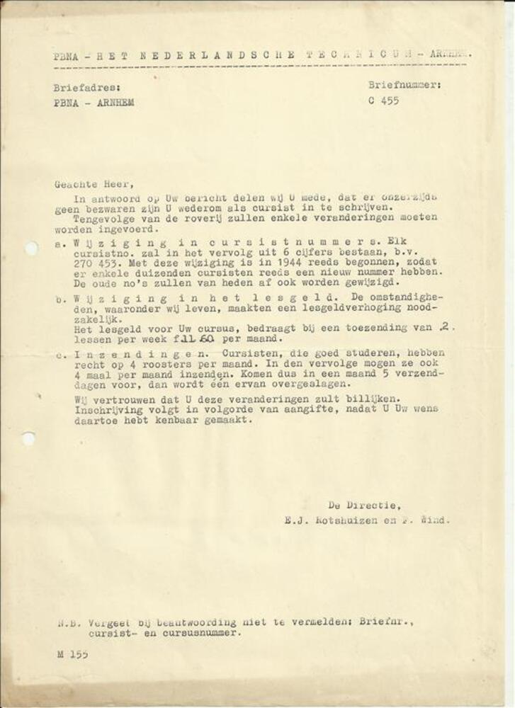 Brief in enveloppe. 7 oktober 1943. Aan den heer G.C...
