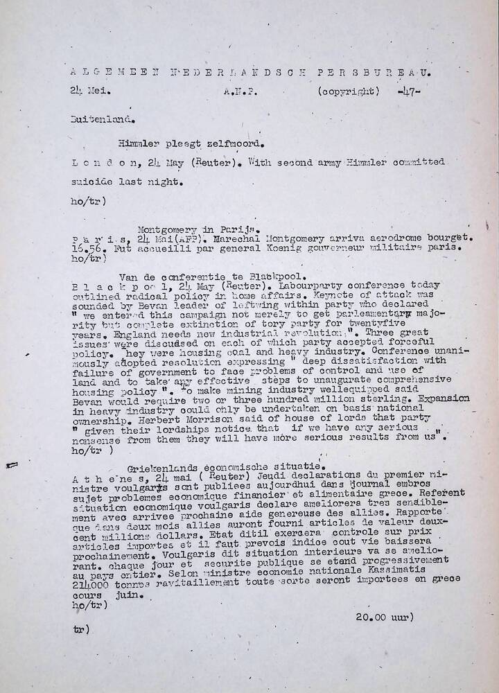 Algemeen Nederlandsch Persbureau, mededelingen, 24 m...