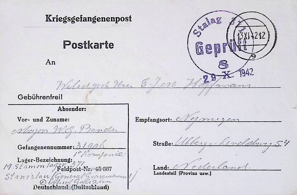 Briefkaart krijgsgevangenenpost .
