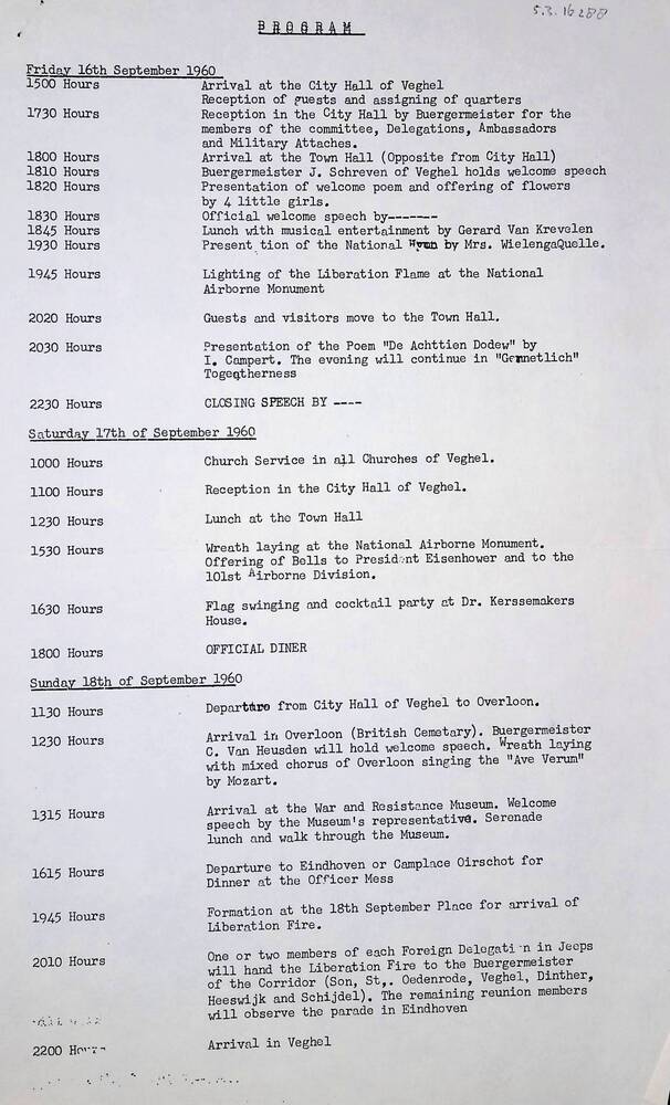 programma bezoek veteranen aan Veghel en Overloon, s...