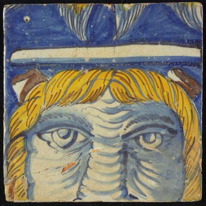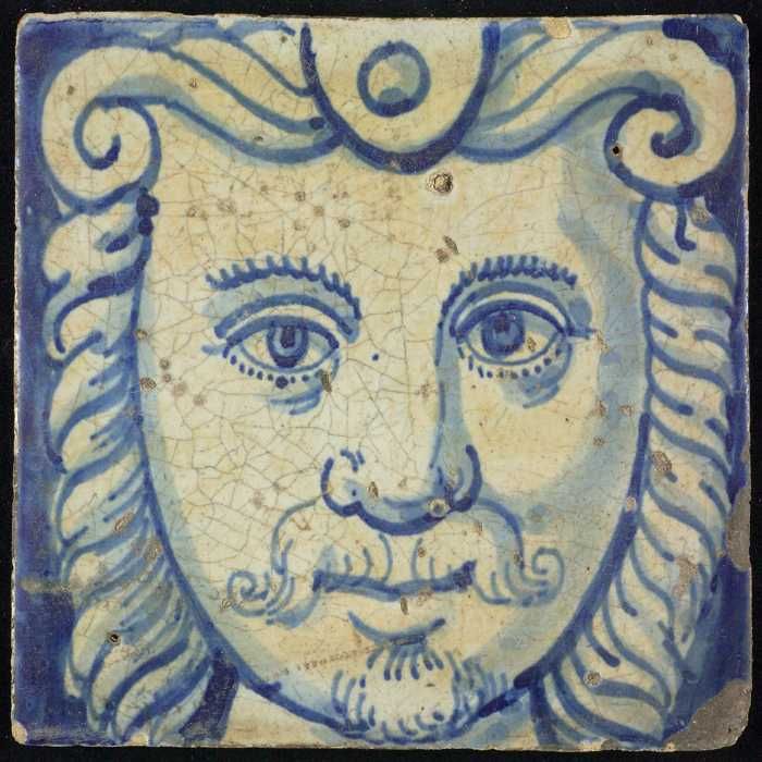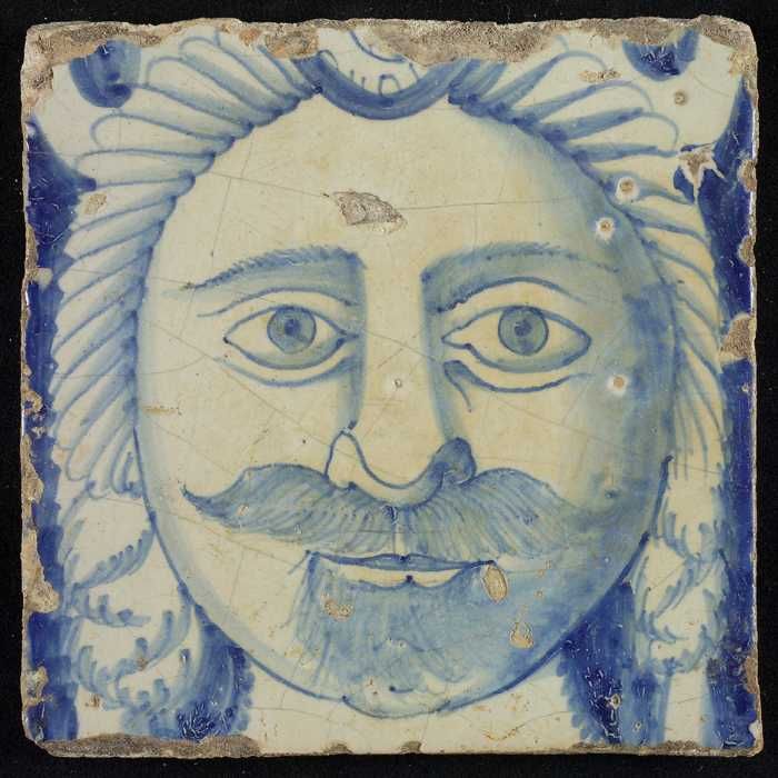 Tegel van schoorsteenpilaster, blauw op wit, hoofd v...