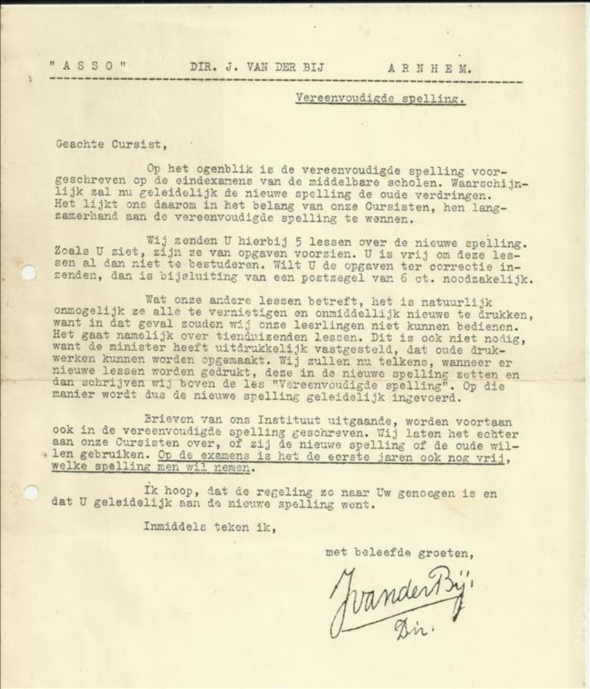 Asso - dir J. Van der Bij - Arnhem - cursus vereenvo...