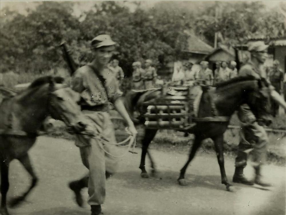 Indië na WO 2: militair, parade, paard, draagstel