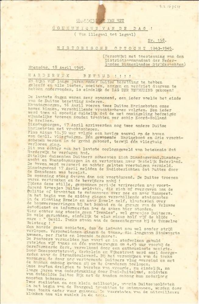 Oranjenummer van het Communique van de dag Nr. 158, ...